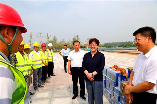 炎炎夏日,酷熱難當(dāng)。張穎波一行為高鐵施工人員送來(lái)了總價(jià)值約2萬(wàn)元藿香正氣口服液、太極水等藥品和西瓜,并送來(lái)了扶溝人民對(duì)施工人員戰(zhàn)酷暑、保進(jìn)度的親切慰問(wèn)。該項(xiàng)目負(fù)責(zé)人感動(dòng)地說(shuō),“張縣長(zhǎng)對(duì)高鐵項(xiàng)目時(shí)刻牽掛于心。過(guò)年時(shí)陪著工人吃餃子,三伏天送‘清涼’,大家心里很溫暖。”該負(fù)責(zé)人表示,要把溫暖傳導(dǎo)給一線施工人員,化作工作的動(dòng)力,加班加點(diǎn)干,保質(zhì)保量干,確保扶溝人民高鐵夢(mèng)如期夢(mèng)圓。