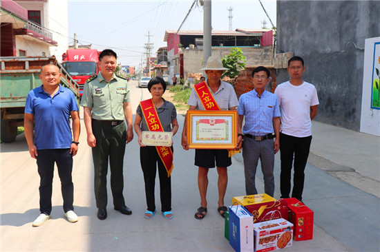 縣人武部、退役軍人事務(wù)局、雙擁辦等相關(guān)單位,通力協(xié)作,深入全縣465個(gè)行政村(居委會(huì)),為軍人軍烈屬發(fā)放光榮牌、義務(wù)兵家庭優(yōu)待金發(fā)放。截至目前,全縣23000多“軍人軍烈屬光榮牌”,已經(jīng)發(fā)放到戶到人。在“軍人軍烈屬光榮牌”發(fā)放中,奉母鎮(zhèn)奉三村現(xiàn)役軍人李中州榮立二等功,縣人武部、退役軍人事務(wù)局、雙擁辦組織到李中州家掛光榮牌并送喜報(bào),看望慰問李中州的父母。李中州的父親說:“中州在部隊(duì)已服役20多年,曾多次獲得三等功,這次又榮獲二等功,這是黨和軍隊(duì)培養(yǎng)的結(jié)果。今天縣領(lǐng)導(dǎo)來家慰問我們,感謝黨和政府對(duì)我家的關(guān)心照顧,我們將囑咐孩子努力工作,為軍隊(duì)事業(yè)再做貢獻(xiàn),為家鄉(xiāng)爭(zhēng)光添彩。”