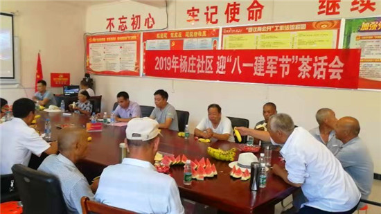 7月27日,在王一博、趙玉超同志的帶領下,辦事處全體班子成員帶領駐村干部帶著慰問品和慰問金,到各自分包社區(qū)開展走訪慰問活動,在不漏一戶、不落一人的慰問要求下,全體干部不畏酷暑,把黨和政府的關懷及時送到退役軍人家中。楊莊社區(qū)94歲的退役軍人楊計得退伍后,熱心公益事業(yè),樸實純粹、淡薄名利,慰問結束后,他緊緊拉住辦事處干部的手飽含熱淚,動情地說:感謝共產黨,感謝黨和政府的關懷,現(xiàn)在縣里發(fā)展那么好,如果再年輕十歲,我還為社區(qū)發(fā)展貢獻自己的力量。