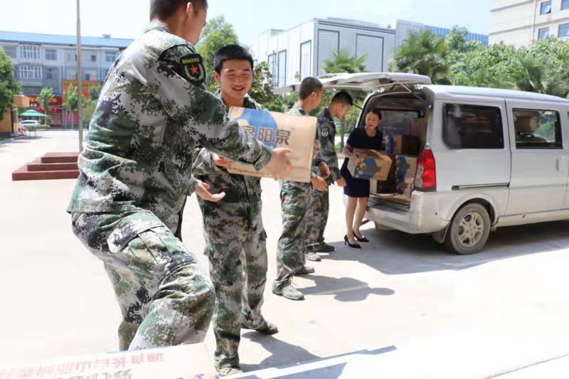 7月29日,太康縣清華園書店負(fù)責(zé)人李丹駕駛面包車,先后來(lái)到縣人民武裝部和消防大隊(duì),為部隊(duì)官兵和消防指戰(zhàn)員送來(lái)礦泉水等。讓他們?cè)诟邷靥鞖饫锔惺艿角迦A園書店送來(lái)的絲絲清涼?!八麄兤匠S?xùn)練、滅火很辛苦,作為一個(gè)愛(ài)心企業(yè),關(guān)心部隊(duì)官兵是我應(yīng)盡的義務(wù)?!崩畹ばχf(shuō)。