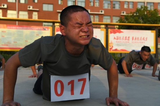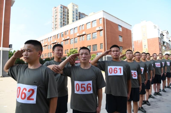 雖已立秋,但炎熱不減。當天下午,記者在役前訓練基地看到,預定新兵們在區(qū)人武部教官的嚴密組織下,身穿整齊訓練服裝,一絲不茍地進行隊形隊列訓練,汗水溻透脊背,訓練熱情高漲,嘹亮的口號響徹訓練場上空,他們以自己的一舉一動,展現出當代軍人不怕苦不怕累的優(yōu)良傳統(tǒng)和立志報國的精神風貌。
