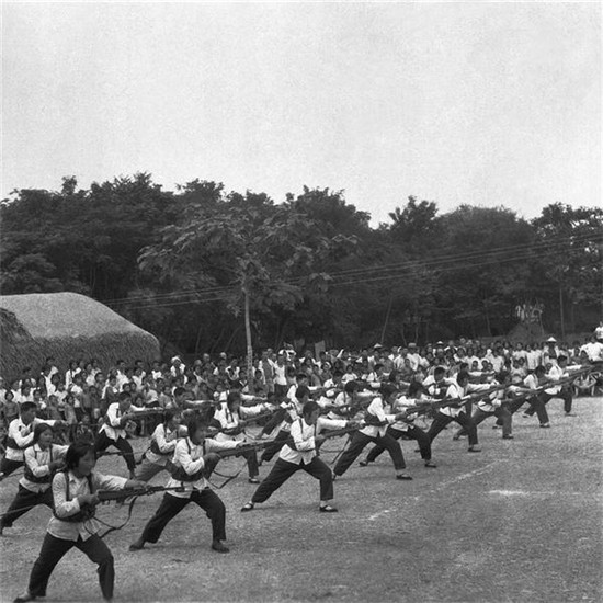 全民皆兵作為貫穿在毛澤東時代的一個最具中國特點的社會景觀,留下了許多值得回味的畫面。廣大農(nóng)民和工人亦兵亦民、亦工亦兵,拿起鋤頭是莊稼漢,走進車間是工人,拿起槍桿就是一個兵。民兵訓(xùn)練在正規(guī)軍人的指導(dǎo)下利用農(nóng)閑時間,采取小型、就地、分散的方法進行,主要訓(xùn)練課目有隊列、刺殺、步槍射擊、投手榴彈、簡易單兵戰(zhàn)術(shù)、站崗放哨等。