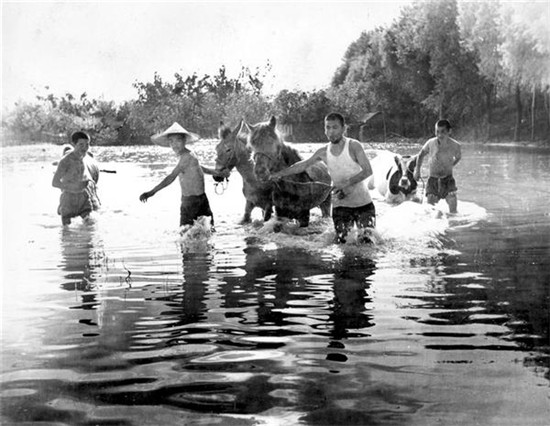 “75·8”大洪水西華、項城受災(zāi)最為嚴重,災(zāi)區(qū)的村民把牲畜趕到大堤上。(圖片來源:劉明和)