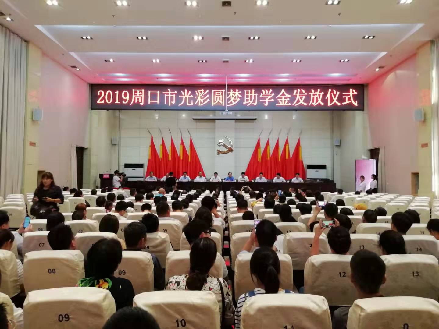 8月30日上午,2019年周口市“光彩圓夢(mèng)”助學(xué)金發(fā)放儀式在川匯區(qū)舉行。市政協(xié)副主席、市工商聯(lián)主席趙萬(wàn)俊,老領(lǐng)導(dǎo)李紹彬、白明寬,市委統(tǒng)戰(zhàn)部副部長(zhǎng)、市工商聯(lián)黨組書記李飛,川匯區(qū)區(qū)委書記李宗喜,市工商聯(lián)副主席、周口市商會(huì)黨委書記徐公俊,市扶貧辦副主任程衛(wèi)東,川匯區(qū)區(qū)委常委、統(tǒng)戰(zhàn)部長(zhǎng)宋煜及市直、區(qū)直有關(guān)單位負(fù)責(zé)同志出席儀式。