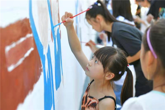 活動(dòng)現(xiàn)場(chǎng),參與者們從設(shè)計(jì)構(gòu)圖到勾勒輪廓,從調(diào)制顏料到搭配色彩,每一個(gè)步驟、每一道工序都一絲不茍。大家圍繞“禮贊新中國(guó) 歌頌新時(shí)代”這一主題,在近百米長(zhǎng)的墻面上認(rèn)真作畫(huà),只見(jiàn)現(xiàn)場(chǎng)參與者工筆勾線(xiàn)、揮毫上色,經(jīng)過(guò)一個(gè)多小時(shí)的創(chuàng)作,“社會(huì)主義核心價(jià)值觀”“中國(guó)夢(mèng)”“市民文明公約”等愛(ài)國(guó)元素躍然墻上……內(nèi)容豐富、形式多樣,一幅幅作品色彩明快、質(zhì)樸純?nèi)唬浞终故玖藭?shū)畫(huà)志愿者們對(duì)祖國(guó)和家鄉(xiāng)的熱愛(ài),對(duì)藝術(shù)的追求和對(duì)美好生活的向往,宣傳了中國(guó)傳統(tǒng)書(shū)畫(huà)藝術(shù),提升了新時(shí)代文化自信,為該縣美術(shù)愛(ài)好者帶來(lái)了一場(chǎng)藝術(shù)盛宴。