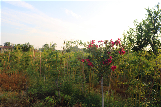 米杰是第一個嘗試吃螃蟹的田園綜合體追夢人,這個在外打拼多年事業(yè)有成的豫東漢子,放棄了原本舒適的城市生活,于去年初回到老家大米行政村,通過流轉(zhuǎn)連片成方土地,栽植紫薇、紅梅、丁香、臘梅、石楠、海棠、櫻花、碧桃、無花果、蘋果、藍莓、石榴、冬棗等各類喬木果樹,并配套完成地下供排水管網(wǎng)和線纜埋設(shè)等現(xiàn)代化農(nóng)田設(shè)施,和鎮(zhèn)里已經(jīng)形成的萬畝中藥材基地連成一片,形成規(guī)模效應。朝著他心目中的“一田花、一片林、一灣水、一首詩、一幅畫”——惠濟灣田園旅游新高地闊步前行。