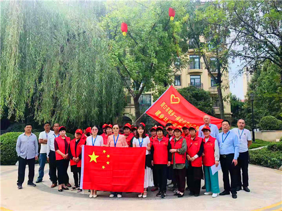 為慶祝中華人民共和國成立70周年,9月20日,建業(yè)社區(qū)組織小區(qū)物業(yè)、社區(qū)志愿者60余人齊聚小區(qū)廣場,以創(chuàng)意快閃的方式祝福、歌頌祖國,獻(xiàn)禮祖國70華誕。