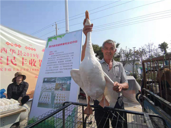 上午10時(shí)許,記者在現(xiàn)場(chǎng)看到,這邊廣場(chǎng)舞大賽舉辦正酣,那邊農(nóng)產(chǎn)品展臺(tái)人頭攢動(dòng)?!斑祝依镳B(yǎng)的大鵝也來‘參會(huì)’了,你看多有意思?!痹陴B(yǎng)殖區(qū)展臺(tái)前,前去參觀的一群婦女開心地說。村民趙大姐說,豐收節(jié)真是農(nóng)民自己的節(jié)日,誰能想到家里的大鵝也能成為“稀罕物”,擺到展臺(tái)前了?旁邊的養(yǎng)殖合作社負(fù)責(zé)人接過話茬:“你可別小看這大鵝,一年給俺帶來幾百萬元收入呢。”