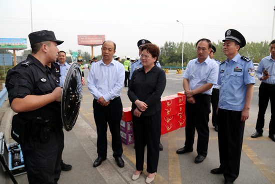 離70年大慶越來越近,喜慶的氣氛越來越濃,一線執(zhí)行安保工作的公安民警肩上的擔(dān)子也越來越重。9月24日下午,扶溝縣領(lǐng)導(dǎo)張穎波、詹凱、朱良杰、王霄靈及縣公安局局長田豪杰等,來到鹽洛高速扶溝站親切看望在此執(zhí)勤的公安民警。