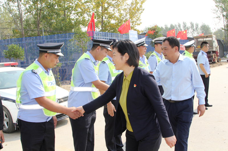 國慶前夕,鄲城民警踐行新使命、忠誠保大慶。全警投入堅守一線,守護(hù)一方安全。9月27日,鄲城縣委書記羅文閣帶領(lǐng)縣四個班子領(lǐng)導(dǎo)到南關(guān)派出所、公安交通臨時檢查站、縣公安局等地看望慰問一線值班民警,向他們表示衷心感謝和親切問候??h領(lǐng)導(dǎo)李全林、崔衛(wèi)國、李建軍、馬超、縣公安局局長陳鳳祥、政委趙紅建、縣政府黨組成員張仁杰等參加慰問。