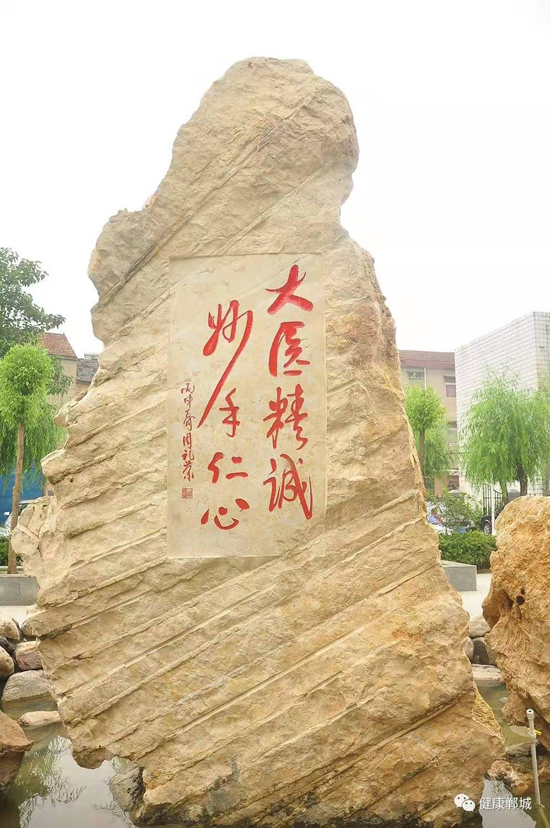 他雖然離開了鄲城,但一直關(guān)注著醫(yī)院的發(fā)展。醫(yī)院領(lǐng)導也多次到上海看望他,向他匯報醫(yī)院近年來的發(fā)展情況。2016年,鄲城縣人民醫(yī)院院長于健到上??赐牭结t(yī)院近年來快速健康的發(fā)展進程,周老先生非常高興,欣然提筆寫下“大醫(yī)精誠,妙手仁心”八個大字。周老先生的題詞被雕刻在一尊文化石上,座落在醫(yī)院文化廣場上。