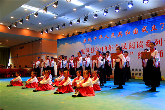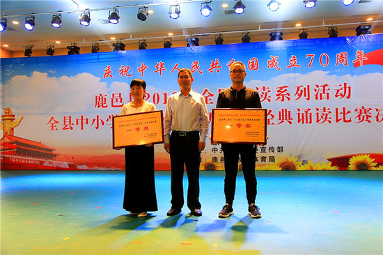9月27日,由中共鹿邑縣委宣傳部主辦、鹿邑縣教育體育局承辦的慶祝中華人民共和國成立70周年、鹿邑縣2019年全民閱讀系列活動(dòng)——全縣中小學(xué)生“歡樂進(jìn)萬家”經(jīng)典誦讀比賽(決賽)在弘德中學(xué)報(bào)告廳舉行,在初賽中嶄露頭角的十六個(gè)單位的近800名師生參加了決賽。