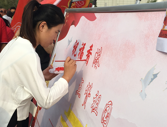 9月29日上午,來自我市各界的青聯(lián)委員及青年代表共同參與“祝福香港 點(diǎn)贊祖國”活動(dòng)。活動(dòng)現(xiàn)場,大家紛紛與國旗合影,并在簽名墻上寫下祝愿祖國的話語。
