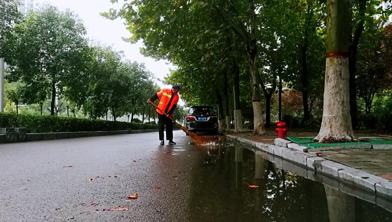 連續(xù)幾日的陰雨結(jié)束后,10月7日一大早,環(huán)衛(wèi)工人們就開始清理中心城區(qū)道路上的積水和落葉,為我市“創(chuàng)衛(wèi)”工作貢獻一份力量。