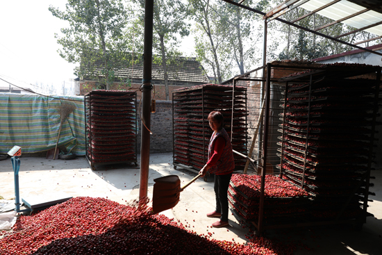 “大伙兒別著急啊,讓我喝口水喘喘氣再來(lái)給你們的小辣椒過(guò)磅……”在西華縣艾崗鄉(xiāng)苗里崗行政村一家村辦炕椒廠院內(nèi),老板郭有明忙得汗流浹背。來(lái)賣(mài)辣椒的村民隊(duì)伍都排到院外了,他擰開(kāi)一瓶礦泉水喝個(gè)精光后又忙起來(lái)。