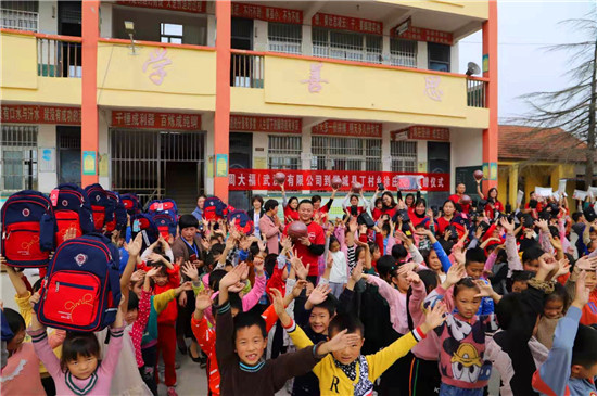 當(dāng)日上午,周大福集團(tuán)組織了15名員工組成義工隊,在周口區(qū)域負(fù)責(zé)人王保安的陪同下,帶著總價值3萬余元的300套愛心物資,送到學(xué)生手中。現(xiàn)場,他們與學(xué)生愛心互動、親切交流,為學(xué)生們背上書包、送上文具,關(guān)心學(xué)生生活和學(xué)習(xí)情況。當(dāng)了解到學(xué)校資金緊張,師生還沒有統(tǒng)一服裝時。岳磊等人表示,將向上級申請,下一步積極為該校師生解決工作裝和校服問題。對此,徐莊小學(xué)師生熱烈鼓掌表示感謝。