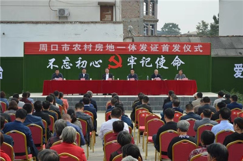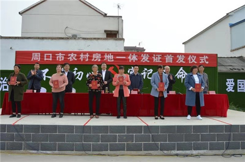 10月24日,周口市農(nóng)村“房地一體”不動(dòng)產(chǎn)權(quán)證書首發(fā)儀式在淮陽(yáng)縣白樓鎮(zhèn)大郝村舉行,周口市自然資源和規(guī)劃局黨組成員、副局長(zhǎng)劉東明、淮陽(yáng)縣委常委李祥生等領(lǐng)導(dǎo)為首批農(nóng)房權(quán)利人頒發(fā)不動(dòng)產(chǎn)權(quán)證書。