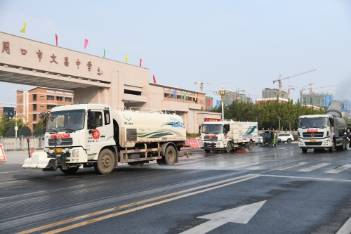 當(dāng)日下午,記者在市區(qū)光明路演示現(xiàn)場(chǎng)看到,2部吸塵車?yán)脧?qiáng)大的風(fēng)機(jī),在吸盤和路面之間形成瞬時(shí)負(fù)壓,將路面垃圾和塵土吸走,隨后緊跟1部高壓清洗車?yán)酶邏核?,將剩下的路面垃圾和塵土沖到路邊,然后由2部洗掃車進(jìn)行洗掃和收水,將沖到路邊的污水和垃圾收走,最后再緊跟1部抑塵車,利用環(huán)保除塵風(fēng)送式噴霧機(jī),進(jìn)行噴霧降塵作業(yè),實(shí)現(xiàn)一次聯(lián)合作業(yè),即可將路面浮塵、垃圾、污水、揚(yáng)塵等徹底清除,最大限度避免造成二次污染和對(duì)道路通行造成的干擾。