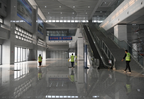 11月8日下午,記者再次來到鄭阜高鐵周口東站,看到一片熱火朝天的施工景象。伴隨著高鐵即將開通,工人緊張施工,施工進(jìn)度一天一個(gè)樣,確保如期交付使用。圖一落客平臺(tái)進(jìn)入鋪油階段。圖二站前廣場緊張施工中。圖三候車大廳進(jìn)入精細(xì)化保潔。