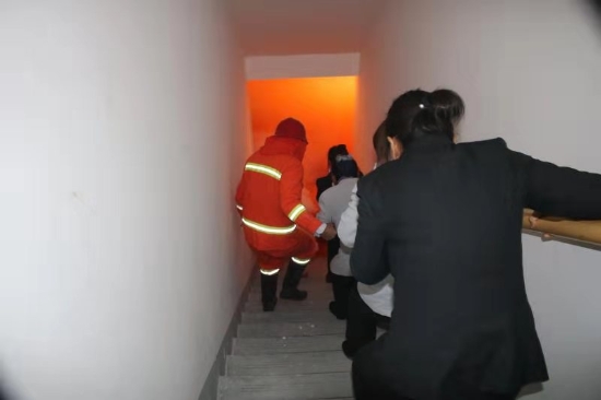 隨后,消防演練正式開始。假設社區(qū)一號樓2層發(fā)生火災,當模擬煙霧上升、警報響起時,社區(qū)工作人員立即按照消防應急預案,疏散組組織樓內被困居民進行有序疏散,滅火組第一時間趕到起火地點撲救初起火災,醫(yī)療救護組人員等待救援,被困人員紛紛用毛巾捂住口鼻,經過3分鐘緊張有序的逃生自救,所有居民逃離火場,撤離到安全區(qū)域,演練達到了預期效果。