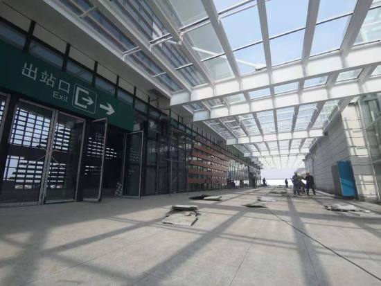經(jīng)過檢票機安檢通道,乘電梯或步梯通往站臺。該站站場設2臺4條(含正線2條),設基本站臺、側(cè)式站臺各1座,站臺最高聚集人數(shù)為600人。