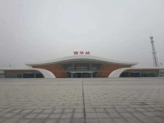 遠遠望去,紅色的“西華站”三個大字格外醒目。站房整體輪廓猶如一個大寫的“西”字,婀娜的姿態(tài)仿佛在翩翩起舞,看上去高端大氣上檔次。該站房整體設計以“舞韻西華”為設計主題,融入女媧飛舞時的優(yōu)美身姿,造型柔美靈動,整體采用兩側(cè)形體承托屋頂?shù)脑煨托问剑环N承托感、力量感呈現(xiàn)在記者眼前,契合了西華當?shù)刎S厚的歷史文化底蘊。