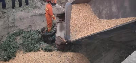 接警后,鄲城消防大隊立即出動3輛消防車15名指戰(zhàn)員前往處置。經(jīng)偵查發(fā)現(xiàn),側(cè)翻車輛是一輛農(nóng)用三輪車,車上拉有約2噸散裝玉米?,F(xiàn)場玉米灑落一地,駕駛員約六十歲,左腿被農(nóng)用三輪車前輪壓住,無法脫身,加之即將天黑,當時天氣較冷,如不及時處置,后果不堪設(shè)想。