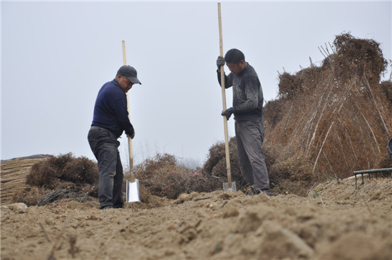 他從最早用尖頭鋼鍬開始,逐漸改為扁頭鋼鍬,再改用目前的鋼筒鍬。耿金中說,挖山藥是一個(gè)體力活,也是一項(xiàng)技術(shù)活,挖山藥多少跟個(gè)人技術(shù)熟練程度有關(guān),因?yàn)樯剿幒艽?,用力分寸、下鍬角度及深淺不合適都易造成山藥折斷,影響品質(zhì)。
