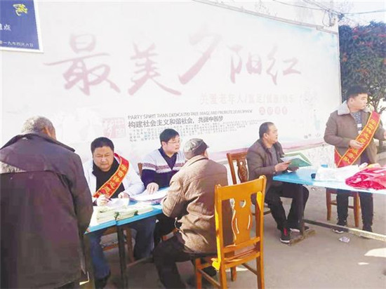 近日,項城市賈嶺鎮(zhèn)衛(wèi)生院學雷鋒志愿服務隊到該鎮(zhèn)敬老院開展義診活動,為老人免費體檢。記者 楊光林 通訊員 黃國贊 攝