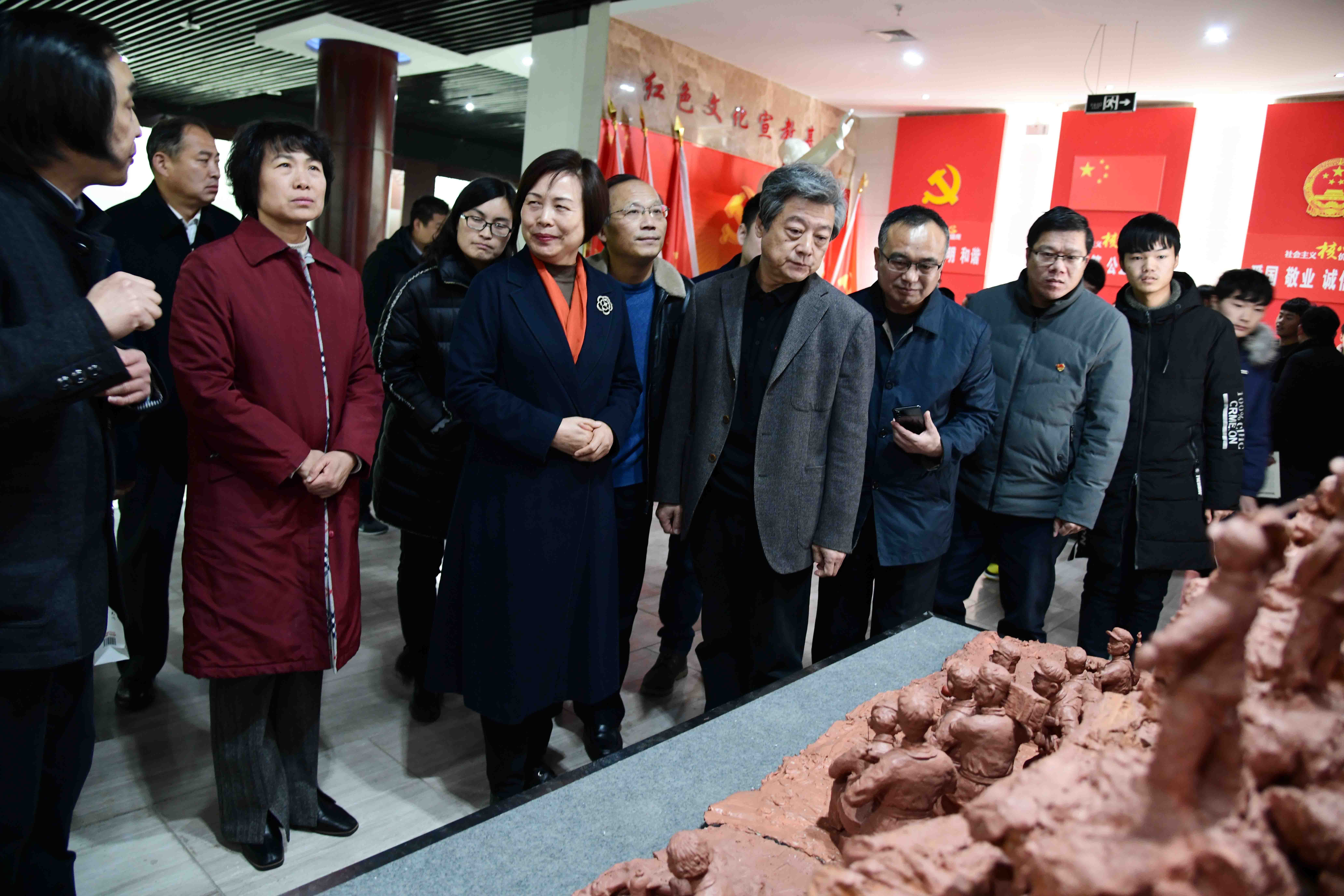 150多幅藝術(shù)作品反映上個(gè)世紀(jì)烽火年代建國(guó)創(chuàng)業(yè)史,按題材分三個(gè)主題,一是軍事題材,塑造有解放戰(zhàn)爭(zhēng)和抗美援朝戰(zhàn)役的人民解放軍征戰(zhàn)沙場(chǎng)的圖卷。二是民俗生活畫卷,再現(xiàn)了以周口為中心北方人民在共產(chǎn)黨領(lǐng)導(dǎo)下建設(shè)祖國(guó)和家園的幸福生活。三是器物藝術(shù)。以鈞窯工藝燒制的慶賀共和國(guó)70華誕的九鼎瓷器,甚如壯觀。