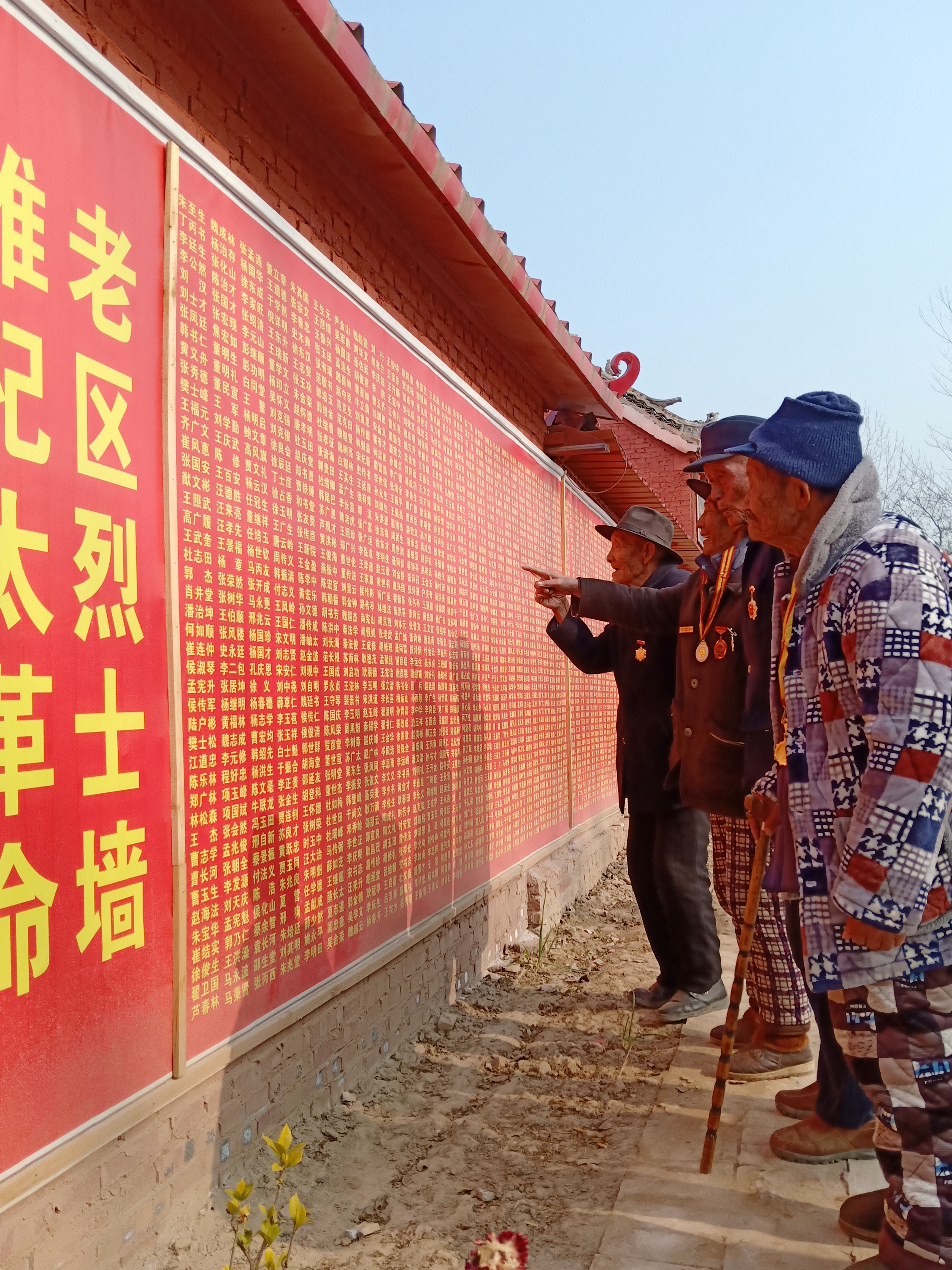 12月13日,在豫東平原一個名不見經(jīng)傳的小村莊——太康縣楊廟鄉(xiāng)三官廟村,該村及附近村莊的郭澤林(91歲)、孫增禮(93歲)、王福慶(94歲)、張新學(xué)(92歲)等抗戰(zhàn)老兵,邁著蹣跚的步子來到三官廟革命紀(jì)念館,在一面鐫刻著3800多名革命先烈名字的烈士墻上默默地尋找著自己戰(zhàn)友的名字,久久不愿離去……