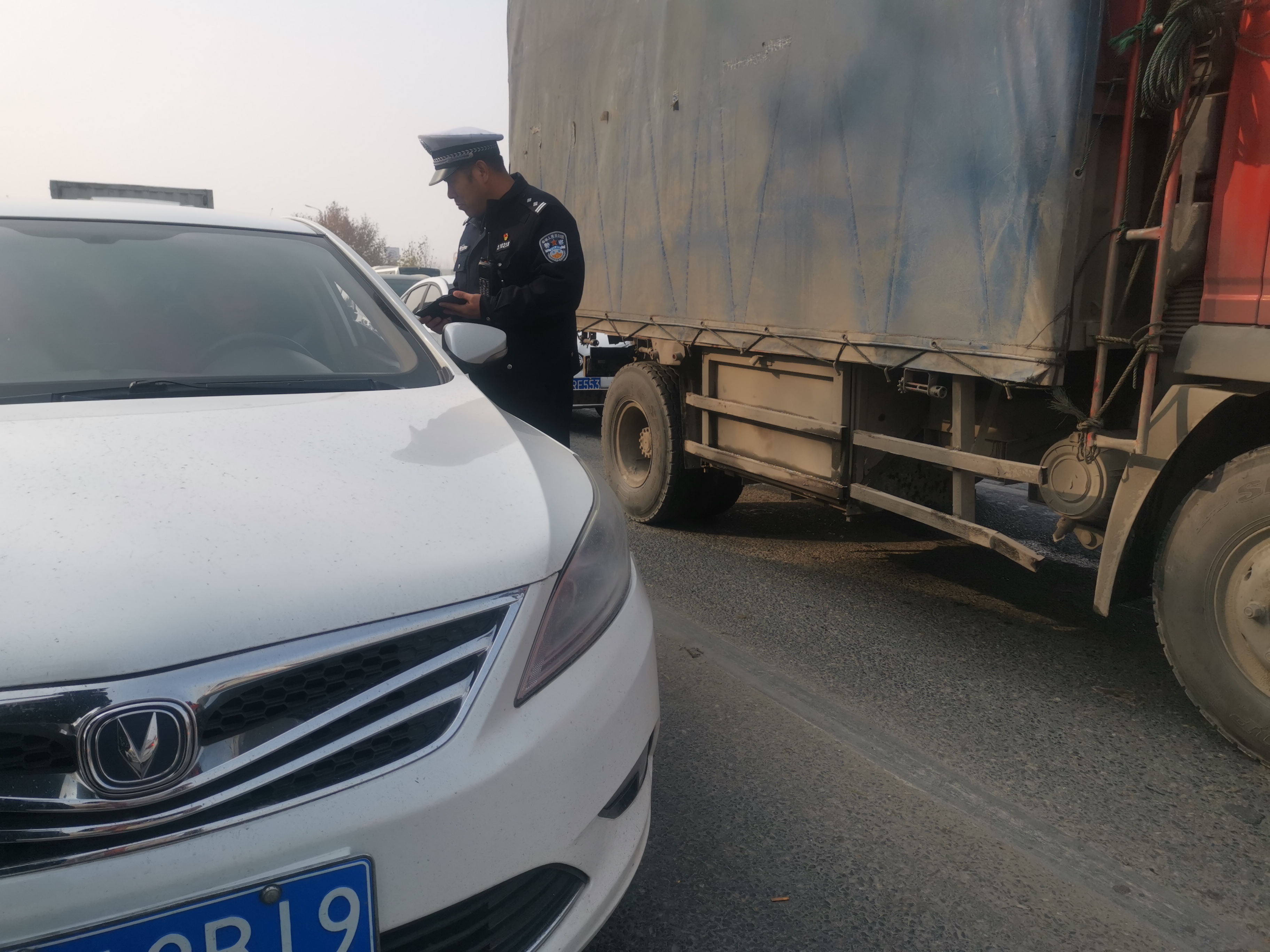 執(zhí)勤交警勸返違規(guī)車(chē)輛
