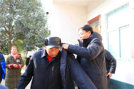 當(dāng)日下午,丁有亮一行給敬老院老人們帶來了棉襖、棉被等御寒物品。丁有亮打開棉襖包裝,幫助老人們試穿大小,并詳細(xì)詢問老人們的身體和日常生活情況,代表區(qū)黨工委、管委會祝老人們新年愉快,身體健康。