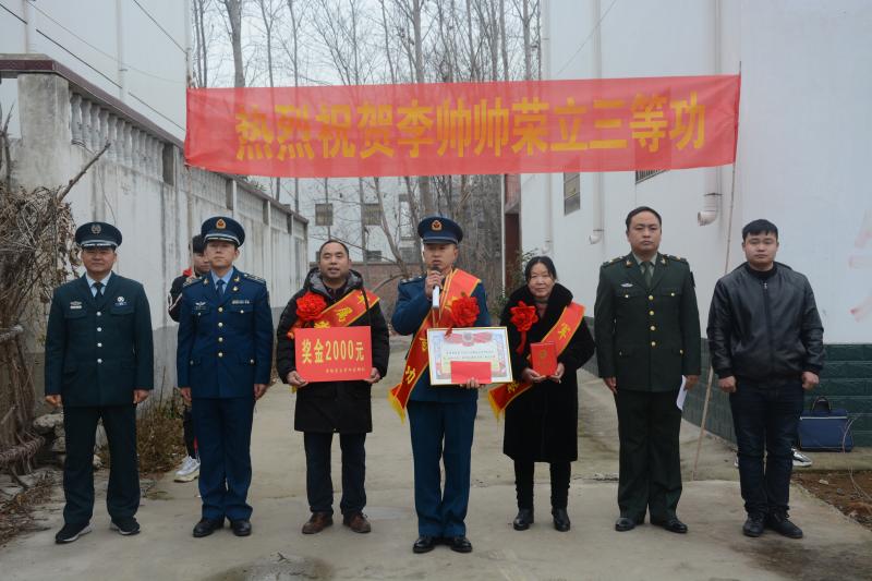 一人參軍,全家光榮;一人立功,全家榮耀。2020年1月2日,沈丘縣洪山鎮(zhèn)廟山李村聽說黃繼光生前部隊(duì)要來送喜報(bào),榮立三等功的李帥帥一家特地選擇在村口迎接這份榮譽(yù)。接過大紅喜報(bào),李帥帥的母親喜極而泣:活了幾十年了,送兒子當(dāng)兵也有12余年,今天是我對(duì)“軍屬光榮”四個(gè)字感觸最深的一次,也是最光榮的一天,沾了兒子的光了……