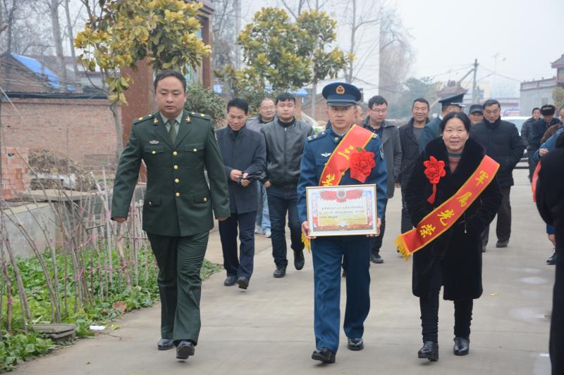 12月下旬,黃繼光生前所在部隊(duì)與沈丘縣人武部、沈丘縣退役軍人事務(wù)局共同商榷,為了使軍人的榮譽(yù)向官兵家庭拓展、向全社會(huì)輻射,在新年前開展一次功章勵(lì)我強(qiáng)軍志、立功喜報(bào)送到家活動(dòng),選派專人成立報(bào)喜小分隊(duì),為立功授獎(jiǎng)的官兵家庭送去立功喜報(bào)和慰問金。