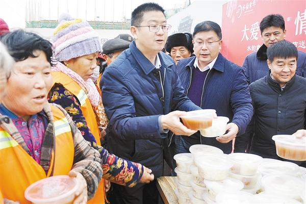 1月2日上午,商水縣在城區(qū)6處人流集中的地方設(shè)立免費(fèi)送粥點(diǎn),1000多碗臘八粥香飄四處,溫暖全城。圖為臘八粥發(fā)放現(xiàn)場。記者 付永奇 攝