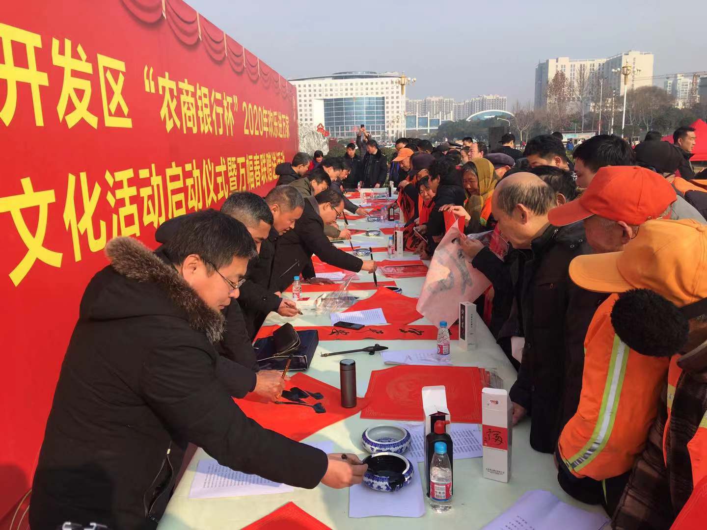 1月3日,開發(fā)區(qū)舉行“農(nóng)商行杯”2020年“歡樂進萬家”春節(jié)文化活動啟動儀式暨萬幅春聯(lián)贈送活動。市文聯(lián)副主席劉勇、開發(fā)區(qū)管委會副主任谷靜、市書法家協(xié)會主席王猛仁等出席啟動儀式。