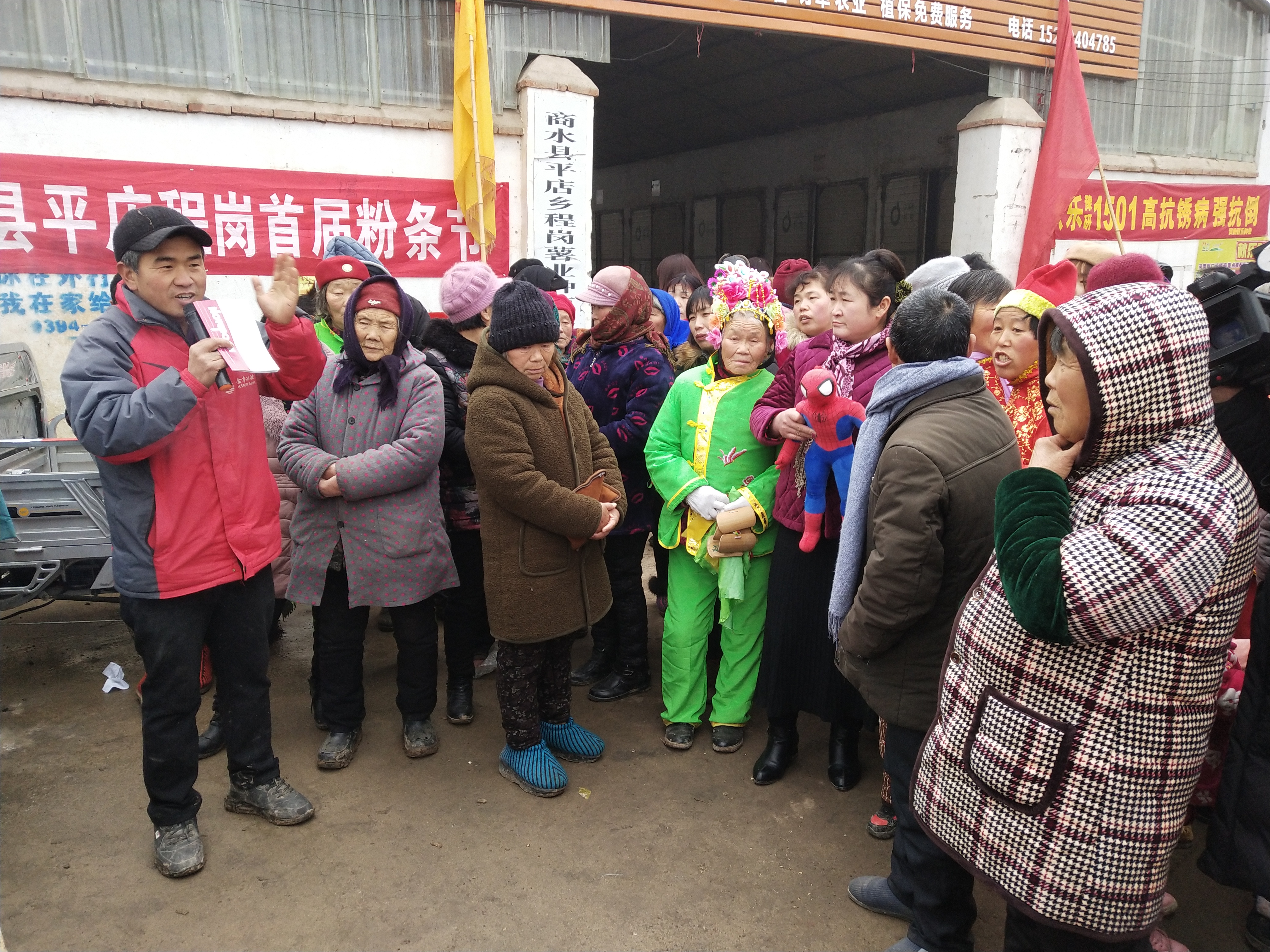 1月12日上午,商水縣平店鄉(xiāng)程崗村西側(cè)一合作社內(nèi)外彩旗飄揚、人頭攢動、熱鬧非凡。一條“程崗村首屆農(nóng)民粉條節(jié)”的標語在風中飄動,十分醒目。