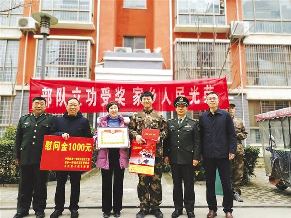 1月21日上午,川匯區(qū)人武部相關(guān)負(fù)責(zé)人來到市城鄉(xiāng)一體化示范區(qū),向現(xiàn)役軍人趙翔宇家中送去喜報(bào)和慰問金。