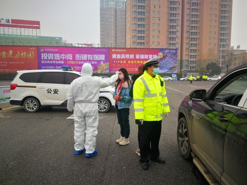 1月27日,寧洛高速沈丘縣收費(fèi)站口,地方交警和醫(yī)護(hù)工作人員正在對(duì)每一臺(tái)下高速的車(chē)輛上的司乘人員進(jìn)行體溫測(cè)量,檢查行駛證、駕駛證和身份證。目前,周口市境內(nèi)各收費(fèi)站和服務(wù)區(qū)設(shè)立衛(wèi)生檢疫站,配備體檢測(cè)溫設(shè)備,對(duì)每一臺(tái)下高速的車(chē)輛上的司乘人員進(jìn)行體溫測(cè)量,檢查行駛證、駕駛證和身份證。同時(shí),要求各單位每天要對(duì)設(shè)施和??拷煌üぞ呦?,室內(nèi)要保持通風(fēng)。