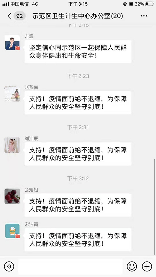 疫情防控中,示范區(qū)衛(wèi)生計生中心負責疫情防控工作的業(yè)務指導及相關協調工作,該中心工作人員為了相關檔案資料的整理也是通宵達旦,有時還得沖到防控工作的前沿,但他們中間無一人退縮,無一聲怨言。接受記者采訪時,工作人員趙燕南語言鏗鏘,斬釘截鐵:“疫情面前絕不退縮,為保障人民群眾的安全堅守到底。”