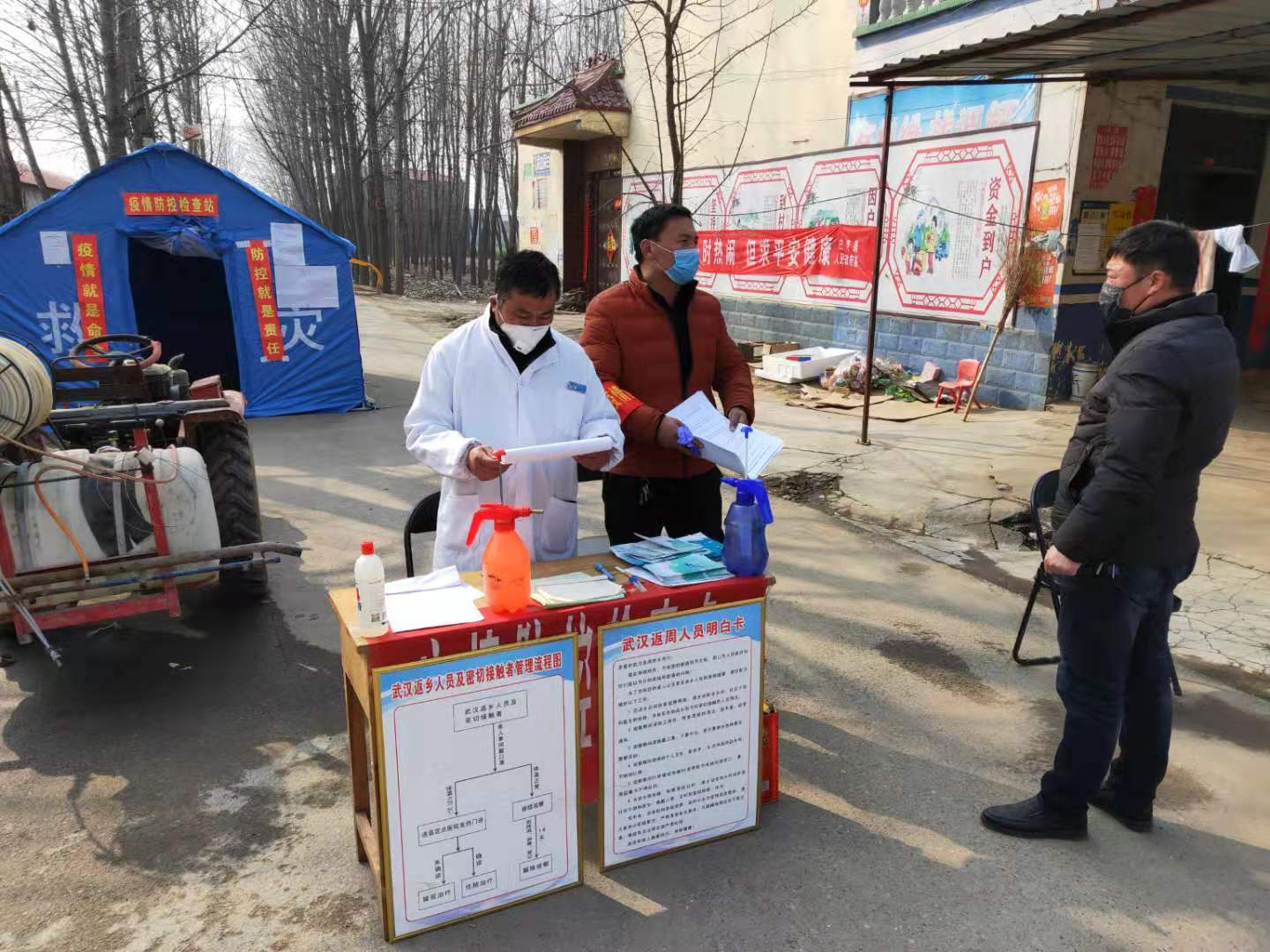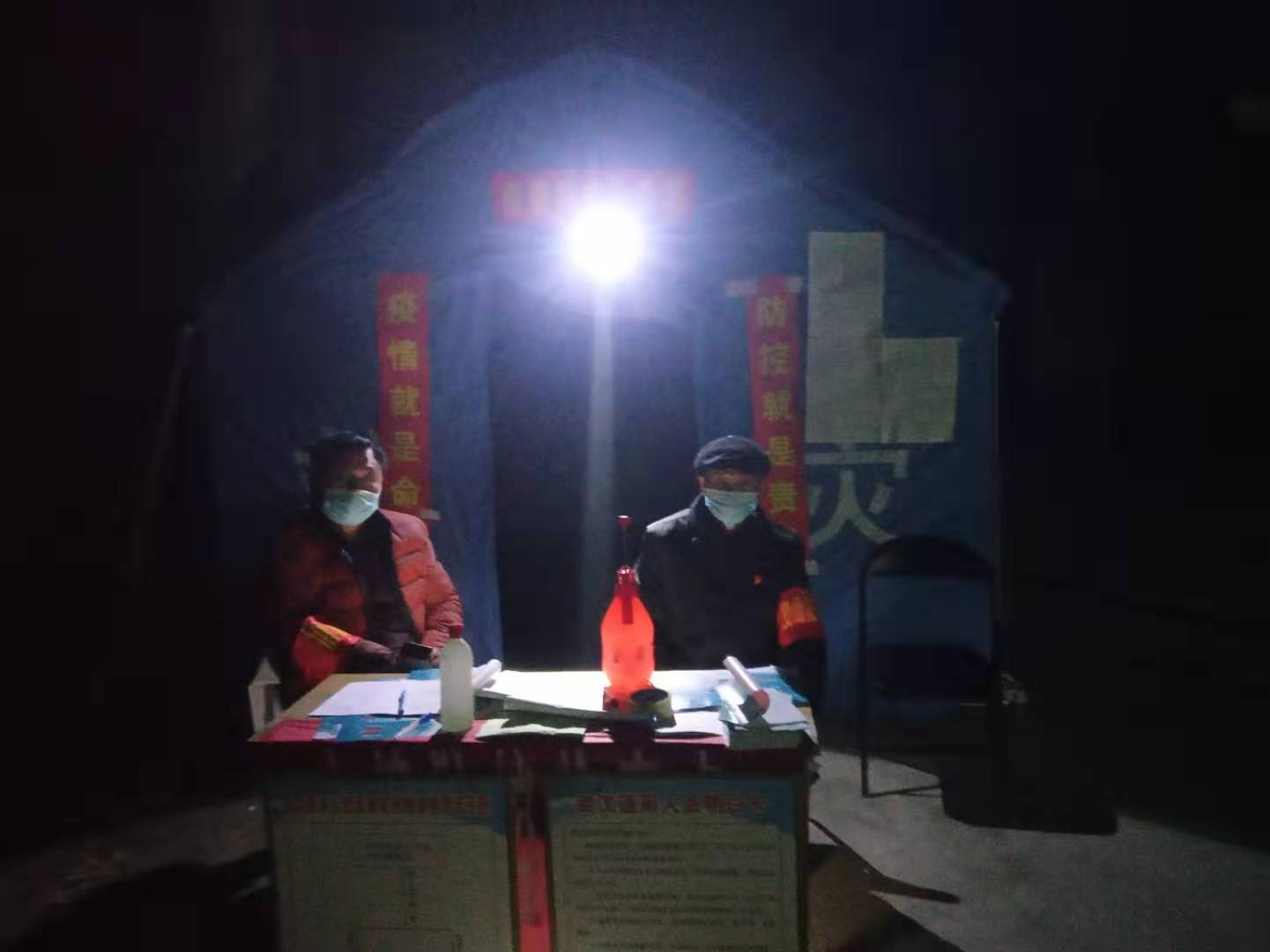 北岳村是白寺鎮(zhèn)最大的村,有大小出村路口20多個,疫情防控難度大。該村除村干部、村醫(yī)以外,又動員了教師、黨員、志愿者80余人參與卡點值班。自1月26日大年初二設立卡點以來,24小時都有人值班,吃飯輪班,有的把飯送過來吃。晚上留專人住在帳篷里。9天來,這個卡點已累計勸返人員280人次,勸返車輛80多輛次,登記進出村莊人員430人次。