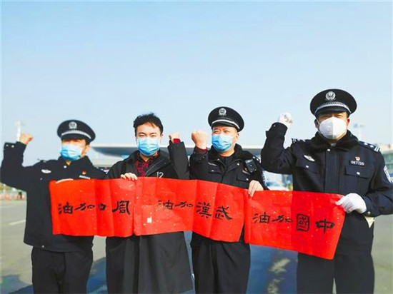 作為一名人民警察,我市新型冠狀病毒感染的肺炎疫情防控阻擊戰(zhàn)打響后,朱成剛幾乎沒有回過家,在鄭州大學(xué)書法學(xué)院上學(xué)的兒子朱震昊已經(jīng)一周沒有見到父親了。2月3日上午,他偷偷來到商南高速北站口,把精心書寫的“中國加油”“武漢加油”“周口加油”等書法作品送給父親及其戰(zhàn)友手中,為他們助力加油。記者 陳永團(tuán) 攝