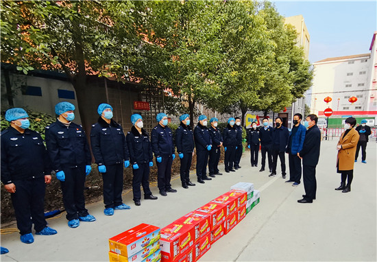 2月13日下午,鄲城縣公安局長陳鳳祥帶領(lǐng)副政委黃建良、行財(cái)室教導(dǎo)員段擁軍,深入胡集鄉(xiāng)檢查指導(dǎo)疫情防控和春耕、復(fù)工復(fù)產(chǎn)工作,再次慰問公安局看護(hù)中隊(duì)駐陽光家園工作隊(duì)員,了解群眾生產(chǎn)和外出人員返城務(wù)工情況,認(rèn)真梳理存在問題,提出具體指導(dǎo)建議,詳細(xì)部署下一步工作。