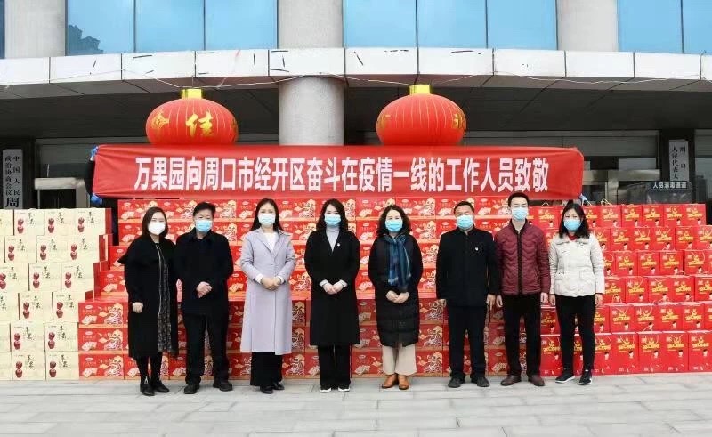 2月13日,河南萬(wàn)果園實(shí)業(yè)集團(tuán)有限公司向開發(fā)區(qū)捐贈(zèng)一起物資,助力疫情防控一線工作人員。