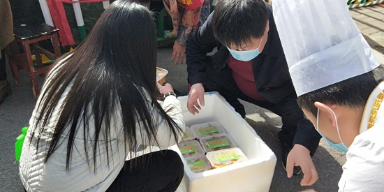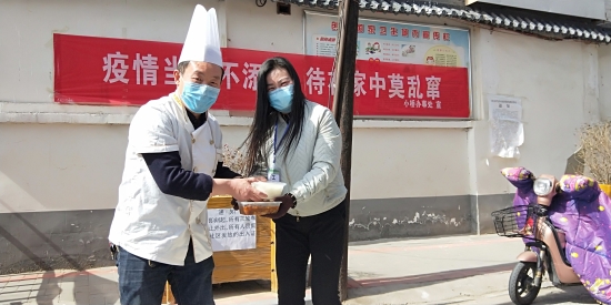 2月22日中午,川匯區(qū)小橋辦事處高莊社區(qū)疫情防控值勤卡點(diǎn)迎來盛世宴賓樓的大廚們,他們帶著熱騰騰的午餐前來慰問值勤人員,為抗疫一線工作者改善伙食。盛世宴賓樓負(fù)責(zé)人智廣旭告訴記者,社區(qū)疫情防控工作緊張忙碌,他好幾次看到值勤卡點(diǎn)的工作人員用方便面對付一日三餐,心里很感動(dòng)也很難受,所以飯店決定在疫情結(jié)束之前連續(xù)贈(zèng)送午餐晚餐,“讓社區(qū)卡點(diǎn)的同志吃好點(diǎn)”。