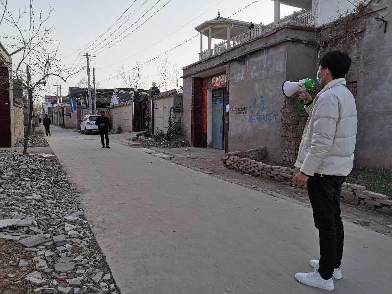 小喇叭,大溫情?!案魑淮迕瘢蠹倚履旰?,我是咱老冢鎮(zhèn)政府的工作人員,也是咱李鳳行政村的包村干部,最近新型冠狀病毒疫情形勢嚴峻,請各位村民盡量不要出門......”師東光每天都會帶上夜間充滿電的高音小喇叭,每天上午、下午都要在村里的大街胡同走上一圈,用小喇叭宣傳勸阻大家盡量不要出門,不要在村內(nèi)聚集扎堆聊天、打牌。連續(xù)多日,他用小喇叭傳送著大溫暖。