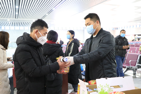 現(xiàn)場,外出務工人員們戴著口罩遮了大半張臉,但是舉手投足難掩興奮。他們在服務臺掃碼進行電子證明注冊,填寫登記表。工作人員給他們送上了方便面、火腿腸、飲料等途中需要的“干糧”,力求為返崗務工人員提供周到的服務?!胺浅8兄x政府為我們考慮得這么周到,我們外出務工一定好好工作,不辜負家鄉(xiāng)人民的厚望?!眮碜栽S灣鄉(xiāng)的李振俊對記者說。