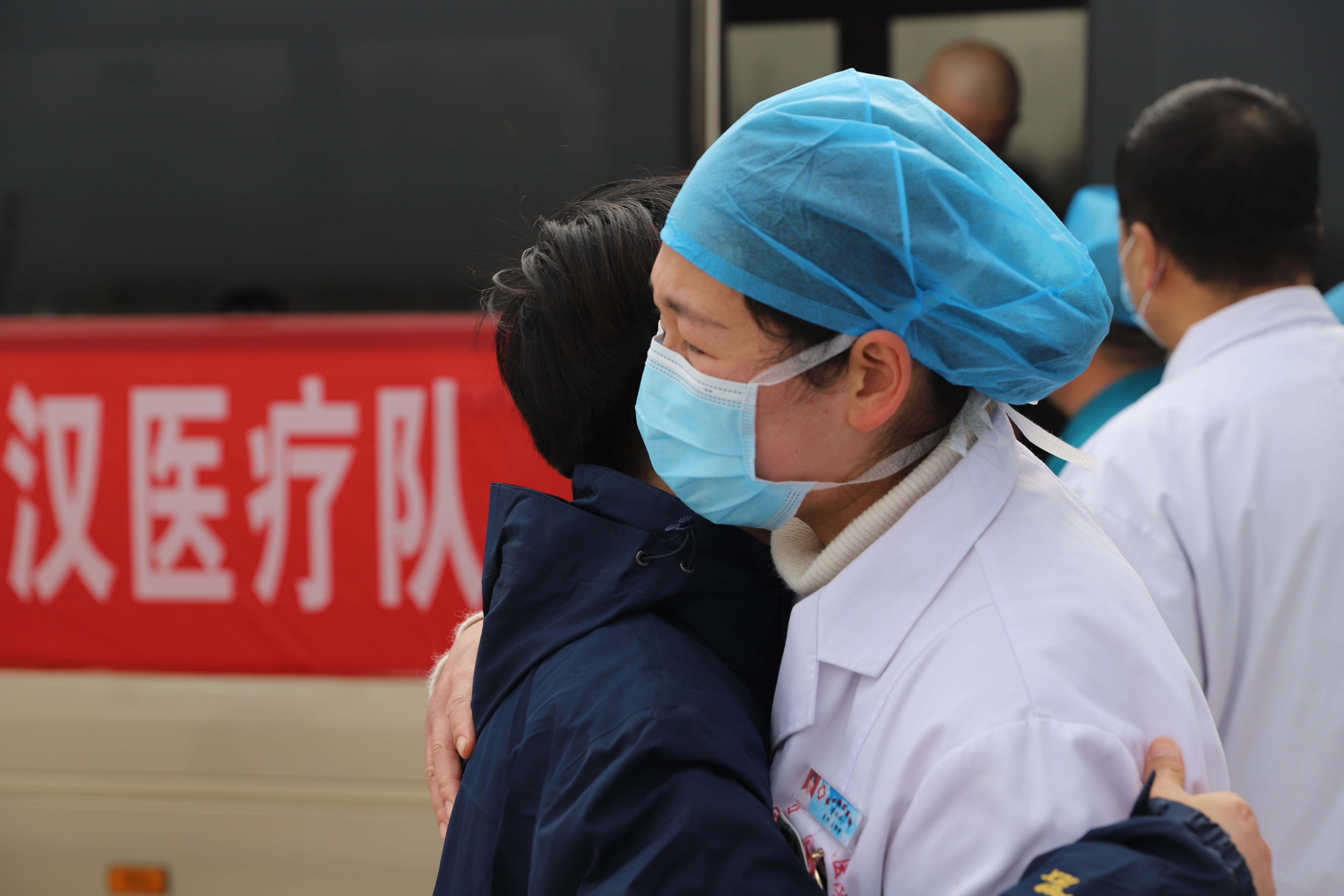 人群中,即將踏上征程的心內(nèi)科主治醫(yī)師尹東云正在和她的同事們道別。尹東云是一名“90后”,從河南大學(xué)讀研畢業(yè)后,來(lái)到港區(qū)醫(yī)院工作。她的丈夫任化龍?jiān)谝慌钥此龝r(shí),眼睛有些濕潤(rùn)。任化龍說(shuō):“我知道這次任務(wù)會(huì)有風(fēng)險(xiǎn),但我支持她的決定。醫(yī)務(wù)人員去支援疫情重災(zāi)區(qū),就像軍人搶險(xiǎn)救災(zāi)、保家衛(wèi)國(guó)一樣,是他們職責(zé)?!比位?jiān)?jīng)當(dāng)過(guò)兵,所以他能理解妻子的想法,只是希望妻子要保護(hù)好自己,多幫助一些病人,平安回家。