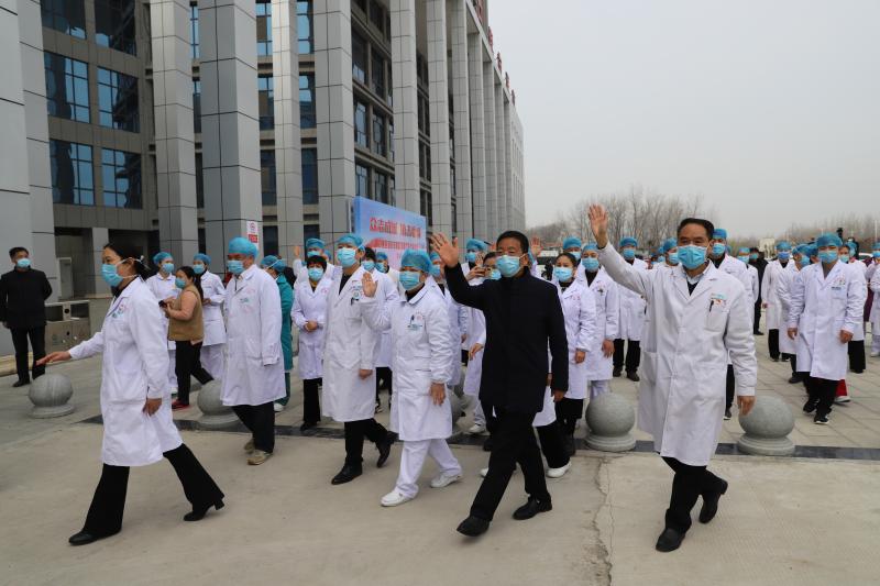 當(dāng)天上午港區(qū)醫(yī)院為醫(yī)療隊(duì)舉行了一場(chǎng)歡送儀式,到場(chǎng)的不僅有該院的醫(yī)護(hù)人員和部分出征隊(duì)員的家屬,市領(lǐng)導(dǎo)和港區(qū)黨委、管委會(huì)領(lǐng)導(dǎo)也親自到場(chǎng),為他們送行。